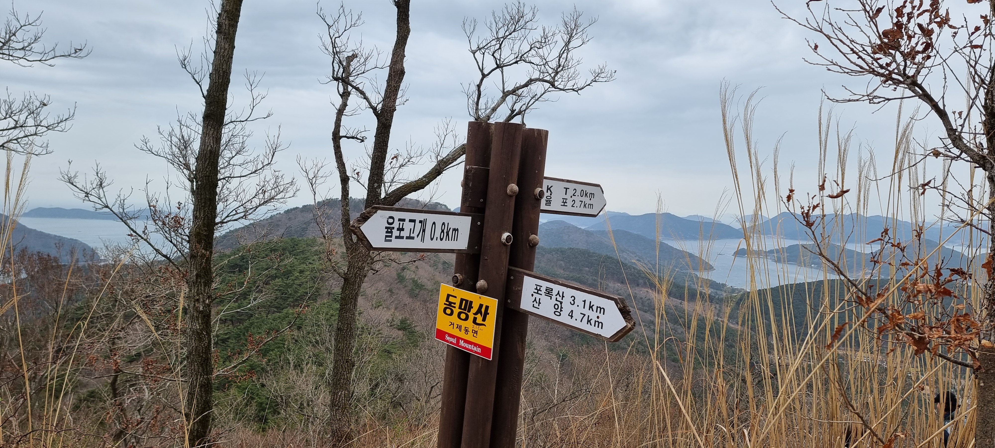 산행일정:오망천 삼거리~윗재~포록산~동망산~덕원고개~국사봉~가배량성
